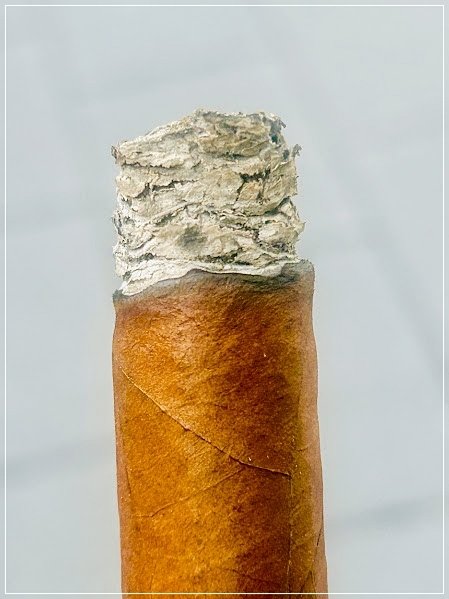 Técnicamente, este cigarro mostró una mejora clara frente a la fumada previa. La línea de quema fue en general bastante recta, la ceniza se mantuvo sorprendentemente sólida durante buena parte de la sesión, y la producción de humo terminó siendo muy buena. El tiro pasó de levemente apretado a muy bueno y luego perfecto durante el tramo central, que fue donde la liga expresó mejor su equilibrio.