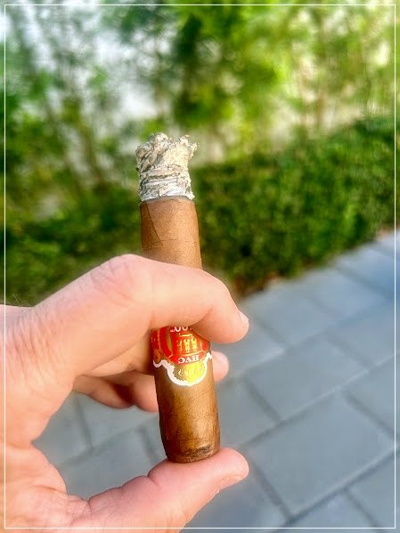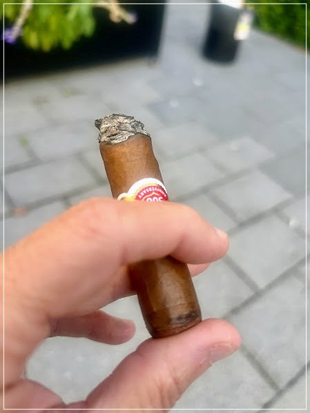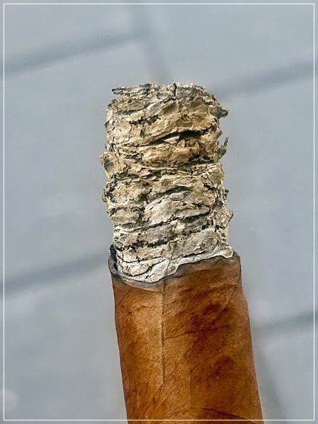 En las postrimerías, el tiro se apretó súbitamente y el puro se apagó por segunda vez. Sin embargo, el reencendido fue limpio, recuperó perfectamente los sabores y, lejos de diluirse, cerró con mucho carácter: picante rojo intenso, madera tostada marcada, chocolate intermedio y cuerpo medio a full. Fue un cierre potente, algo más rústico y menos refinado que el mejor tramo del segundo tercio, pero aún convincente.